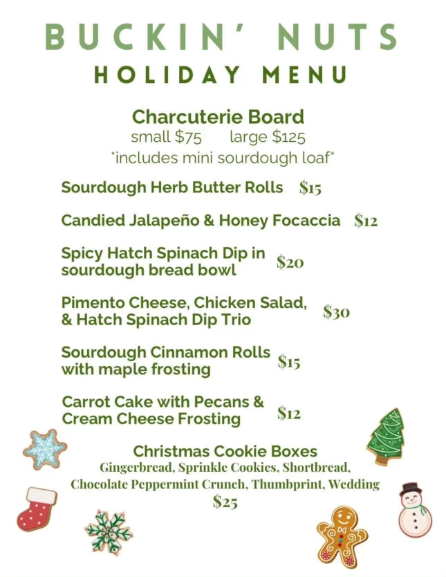 Here is our pre-order Made to Order menu! Orders due Dec. 18th! Message or call 3048301851 with questions!